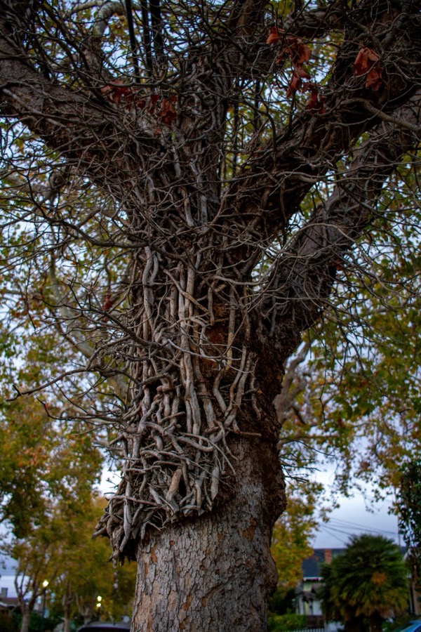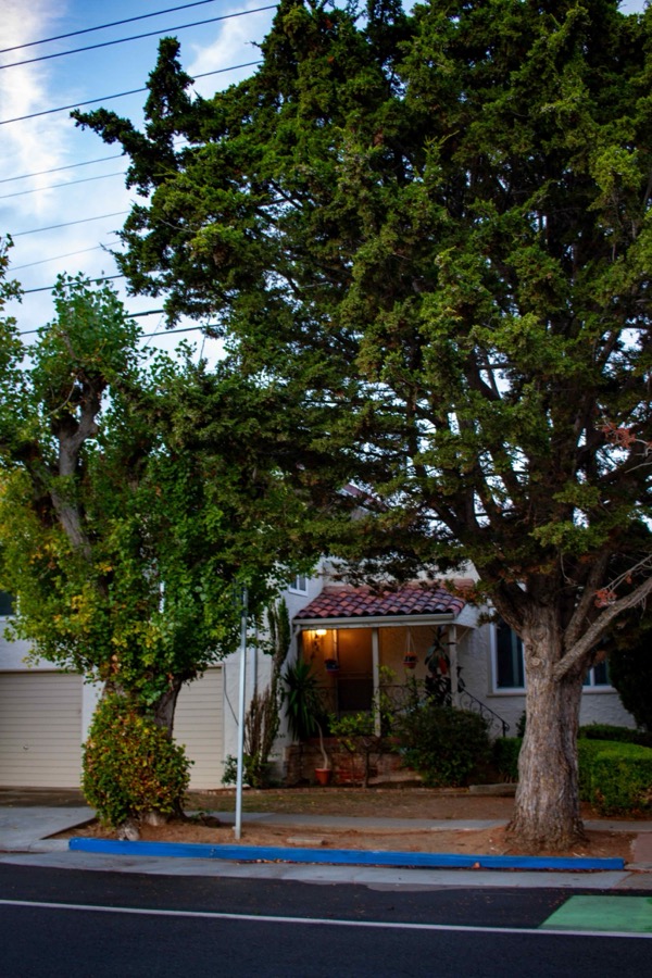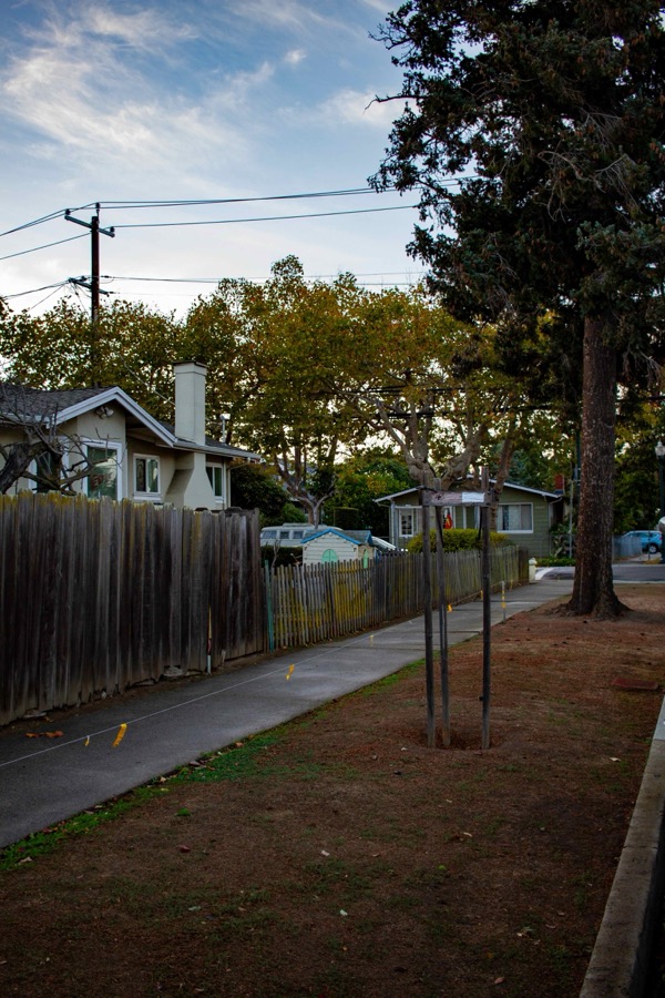 The tree canopy in the neighborhood is patchy and provide poor coverage. You can see there was a tree planted that is no longer there: