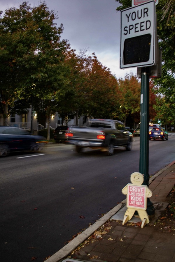 And a speeding, one-way highway arterial cuts right by (speed-reading sign is broken):