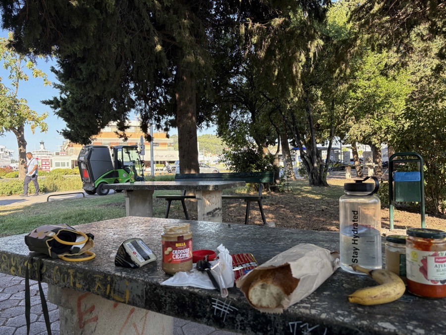 After obtaining information on the boarding process, we sat down for a little picnic across the road: