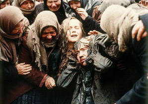 The film’s end is sharply different from its beginning: the Soviet Partisans march stone-faced towards Berlin to counter the Nazi atrocities.